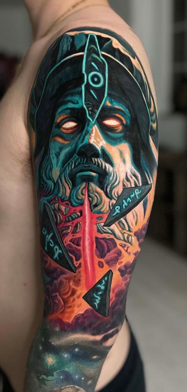 Scifi Leonardo DaVinci. The writing on the floating peices is actually snippets of davinci’s actually handwriting from his notes.